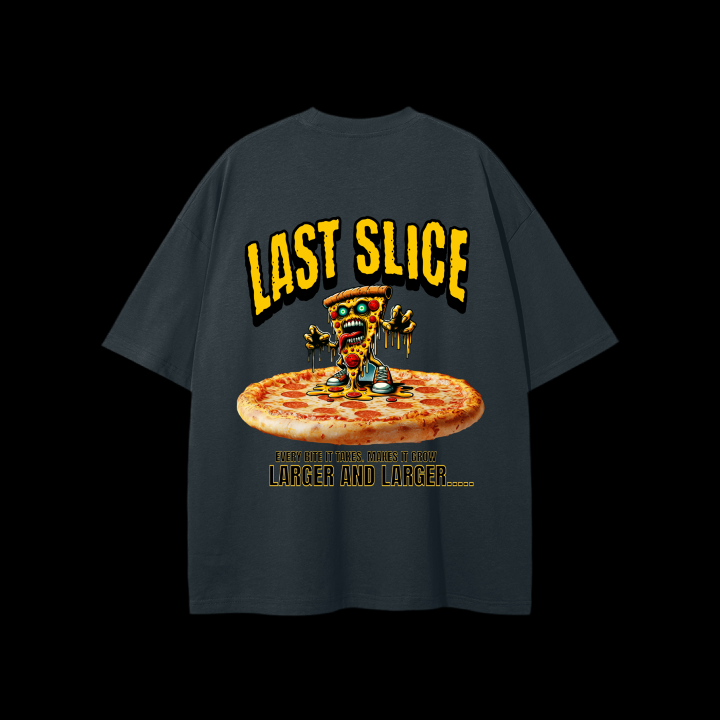 The ultimate showdown! This tee captures the intense moment of the "LAST SLICE," featuring a hilariously monstrous pizza slice ready to defend its cheesy territory. It's a must-have for pizza lovers with a sense of humor.